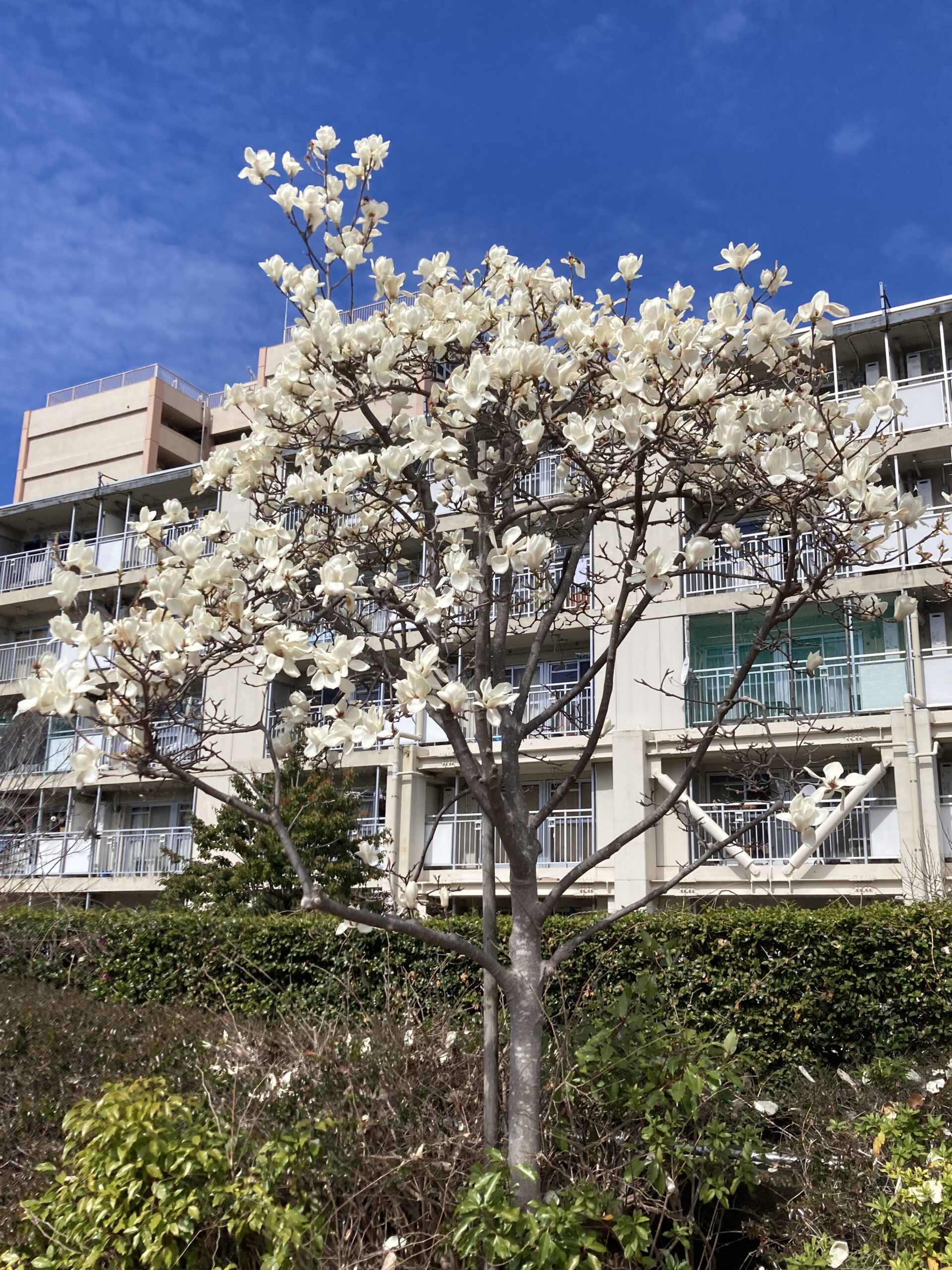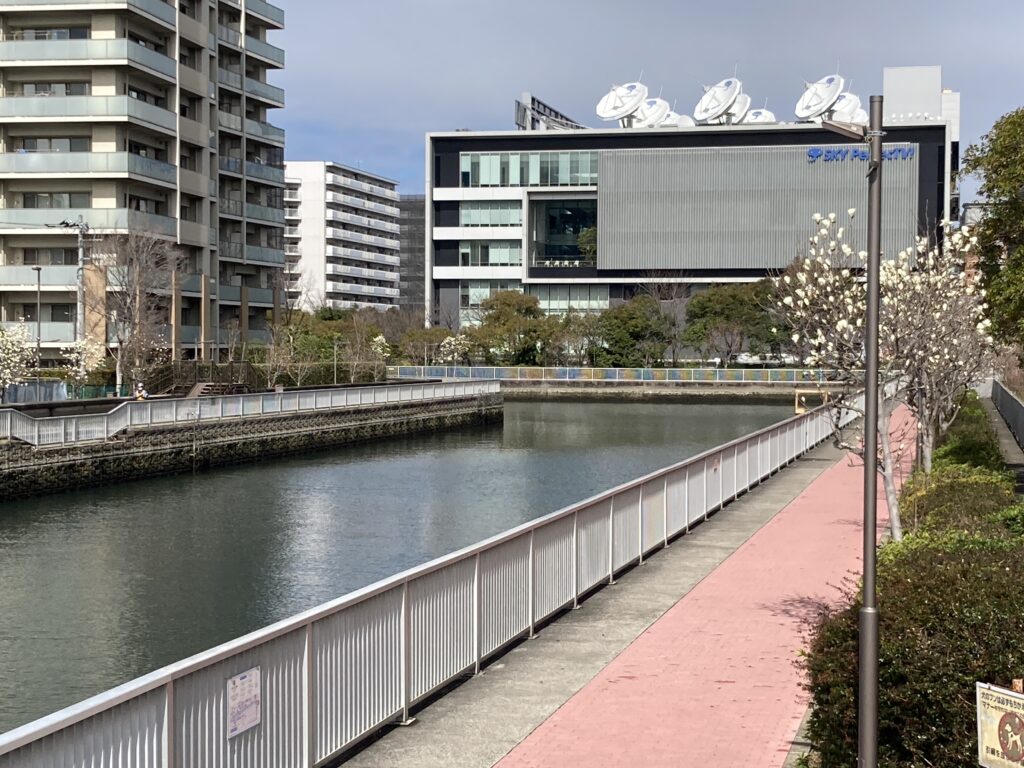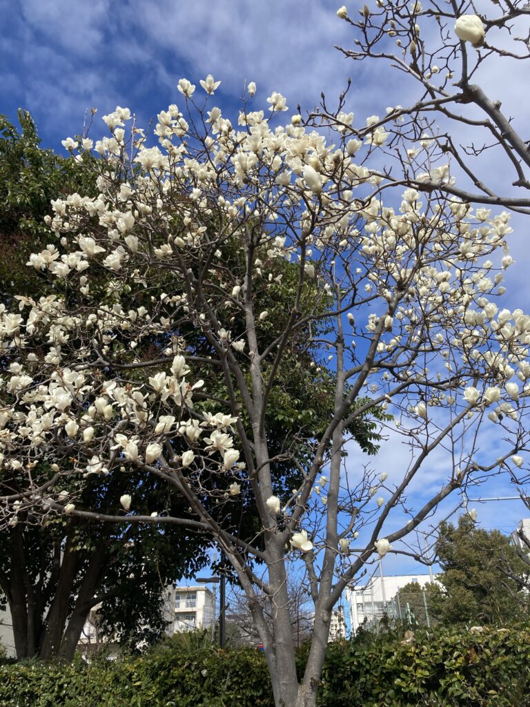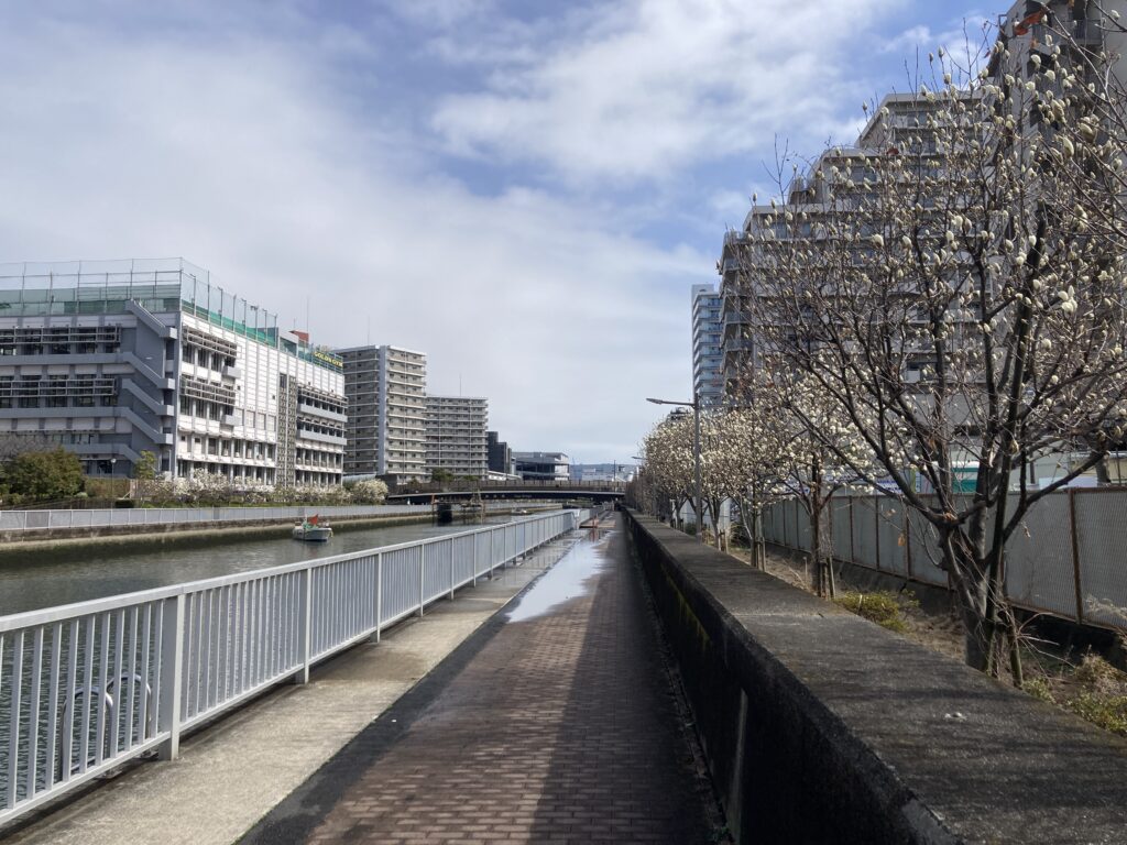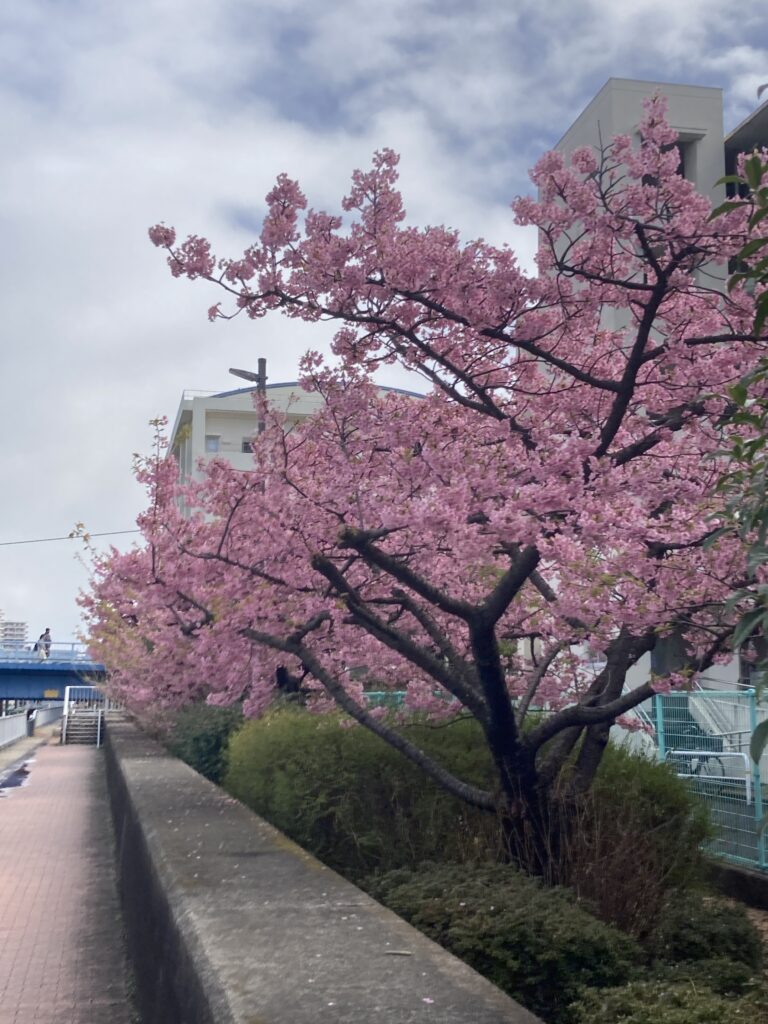 以前に早朝散歩した「汐風の散歩道」について「河津桜とハクモクレンが見頃」という情報があったので、行ってみることに。また前回の散歩で目をつけていた運河沿いのカフェスペースでランチする計画も盛り込んでみました。