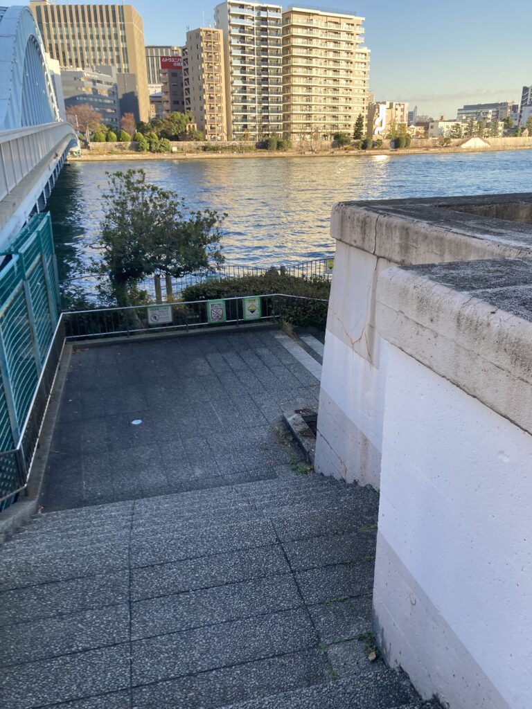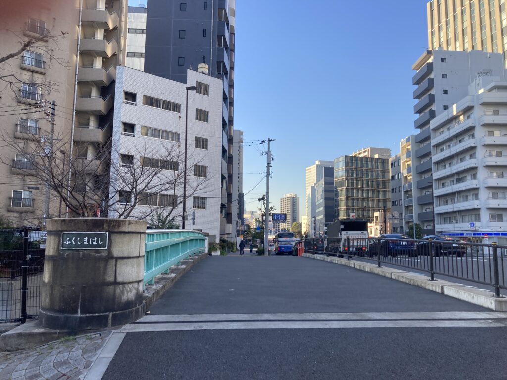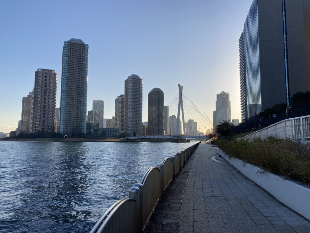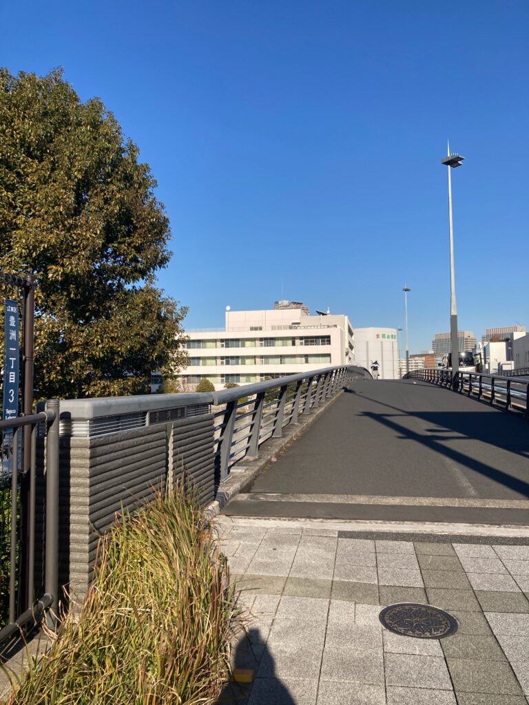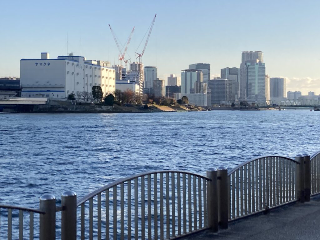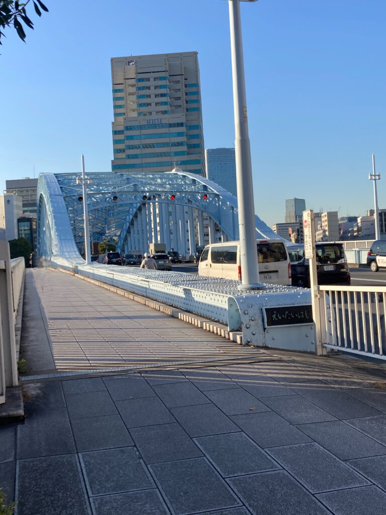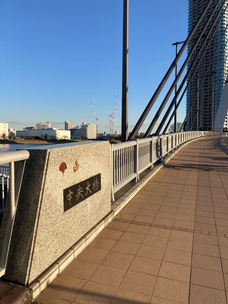 しばらく歩き、先にある中央大橋から左側、佃方面へ向かいます。