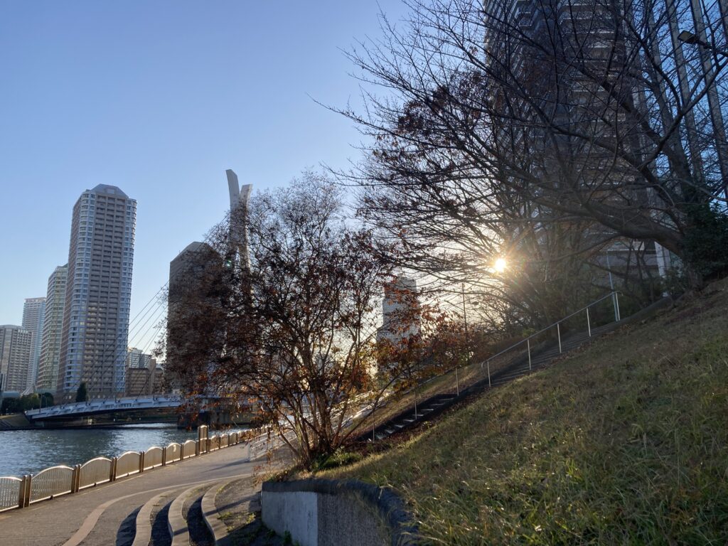 先日歩いた越中島公園の隅田川対岸にある新川公園を含む散歩コースを企画してみました。快晴の午後、気温は12度。