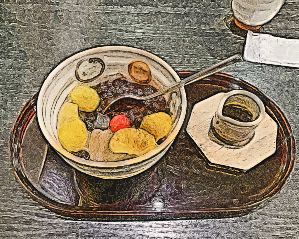 みつ豆、あんみつ系のメニューがかなり多く、迷ったのですが、今回は「栗小倉あんみつ」というのをお願いしました。